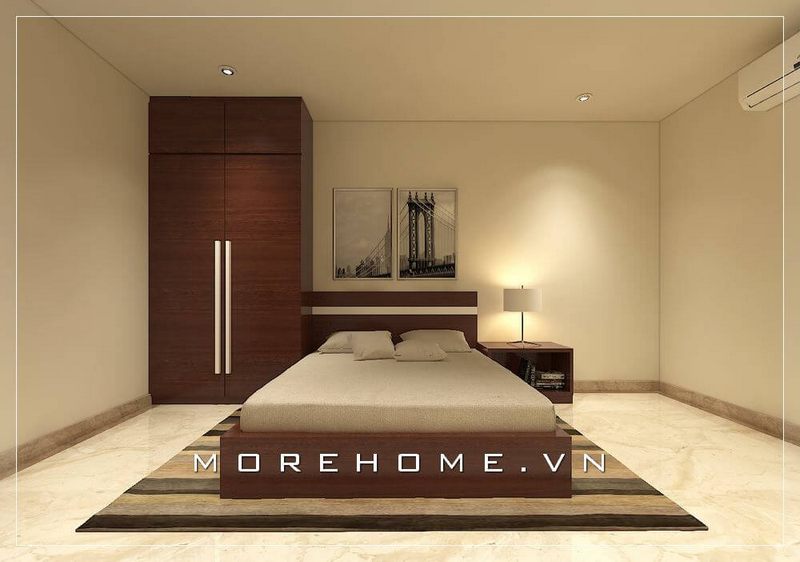Giường ngủ bệt dạng thấp mang lại sự chắc chắn và thoải mái cho căn phòng, dù chật chội cũng trở nên thoáng đãng đầy tiện ích hơn cả