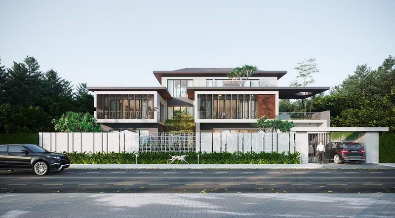 Thiết kế kiến trúc biệt thự nghỉ dưỡng mái thái loại hình biệt thự song lập đẹp tại Láng Hòa Lạc Hà Nội